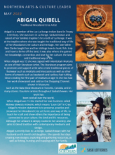Anyone who is practicing Arts and Culture from the Northern District of Saskatchewan.