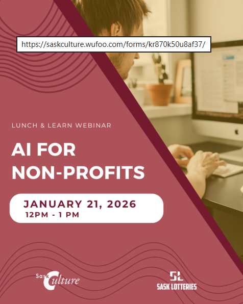 REGISTER TODAY for a new SaskCulture lunch & learn webinar, How to Navigate and Utilize AI for Non-profits.