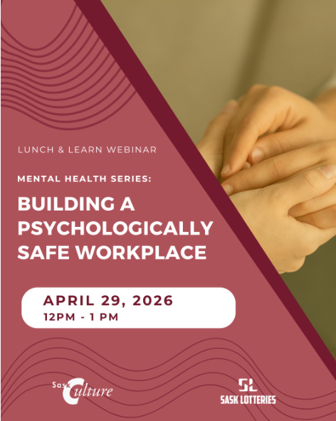 REGISTER TODAY for a new SaskCulture lunch & learn webinar, Psychological Health & Safety: Enhancing Workplace Culture.